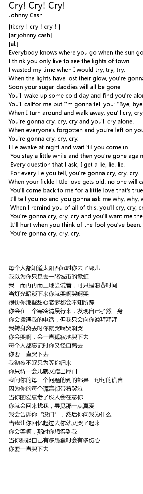 | [00:58.87] | You're gonna cry, cry, cry. |