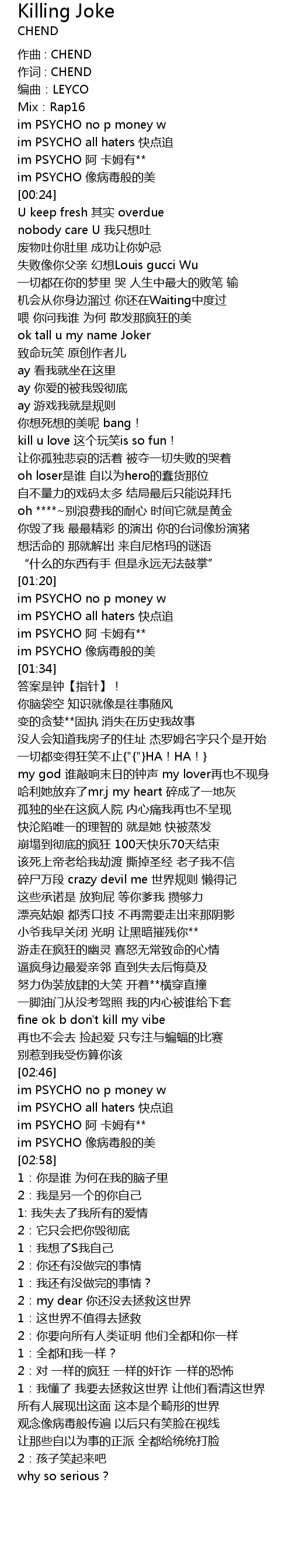 | [02:53] | im PSYCHO 阿 卡姆有** |