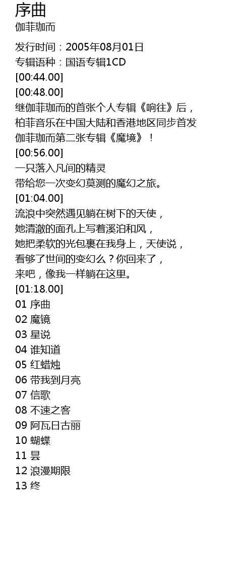 | [00:54.00] | 伽菲珈而第二张专辑《魔境》! |