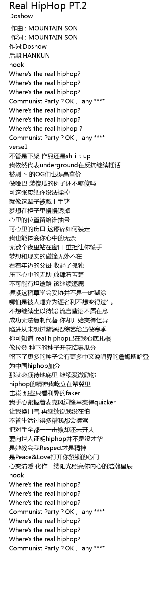 | [00:13.019] | Where' s the real hiphop? |