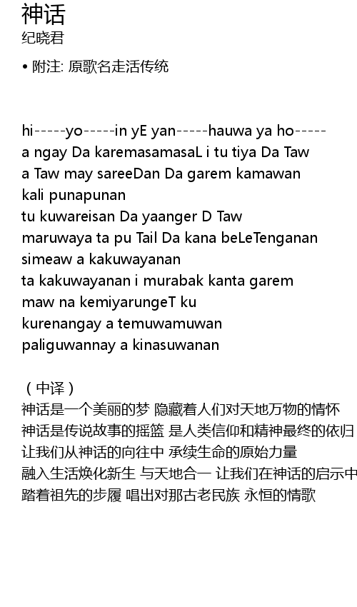 | Song | 神话 |