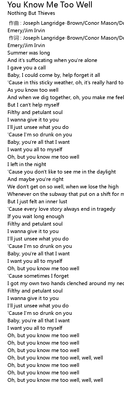 | Song | You Know Me Too Well |
