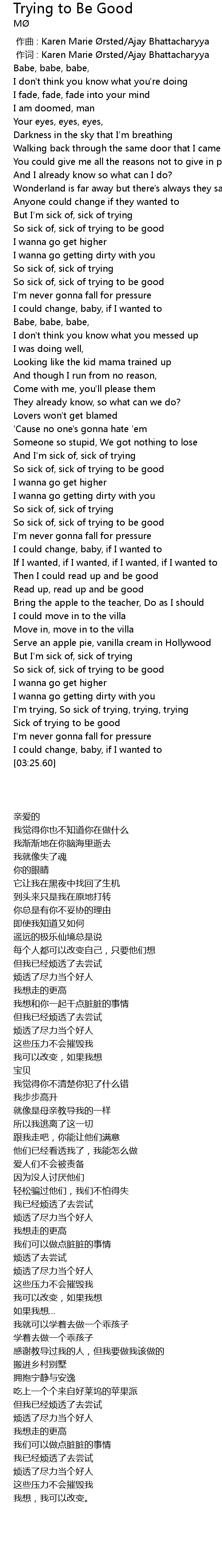 | [02:17.61] | So sick of, sick of trying to be good |