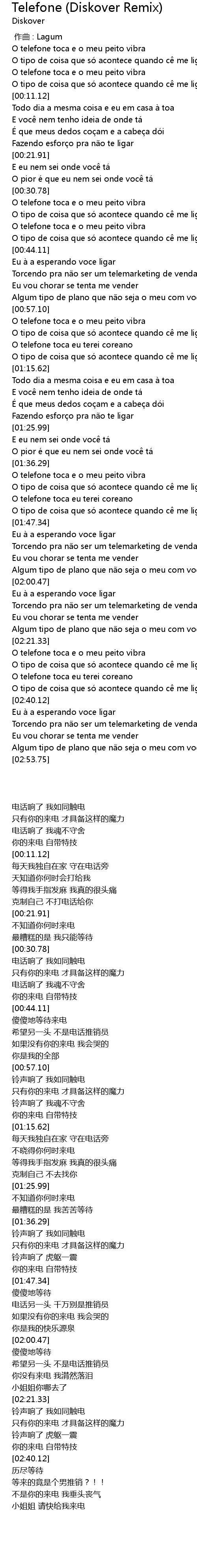 | [00:38.29] | O telefone toca e o meu peito vibra |