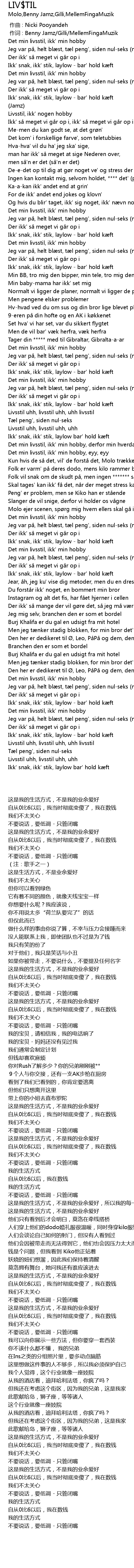 | [00:01.000] | zuò cí : Benny Jamz Gilli MellemFingaMuzik |