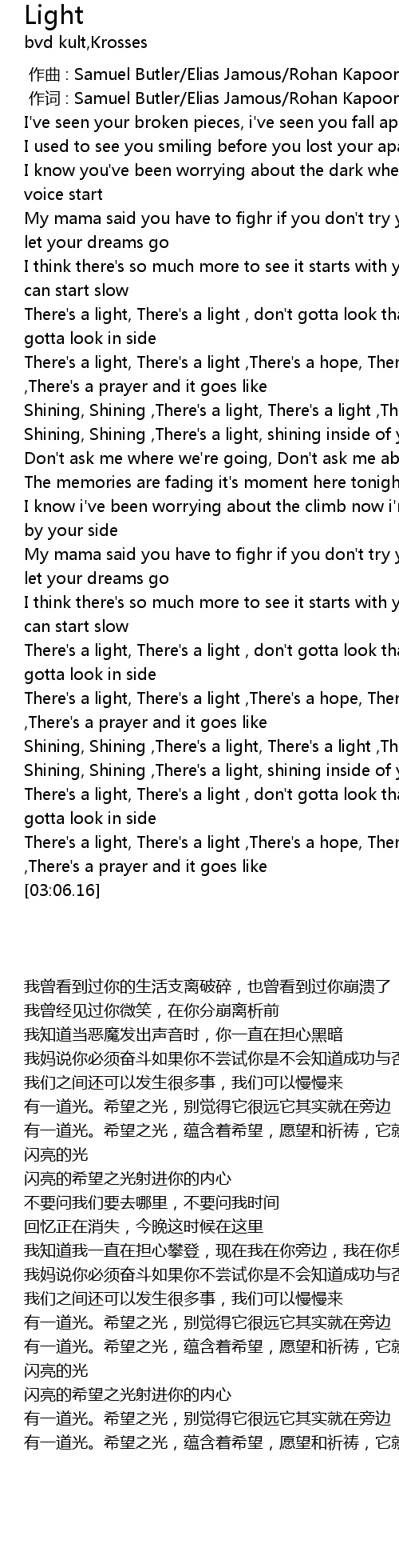 | [00:44.44] | There' s a light, There' s a light , don' t gotta look that far just gotta look in side |