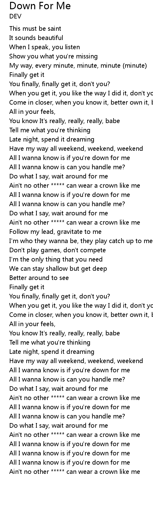 All I wanna know is if you're down for me |