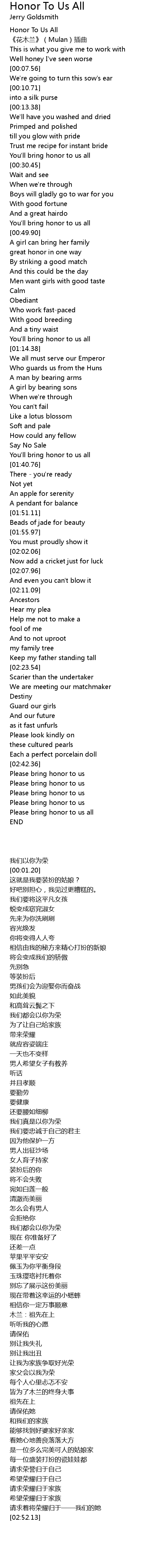 | [00:01.20] | 《花木兰》(Mulan)插曲 |