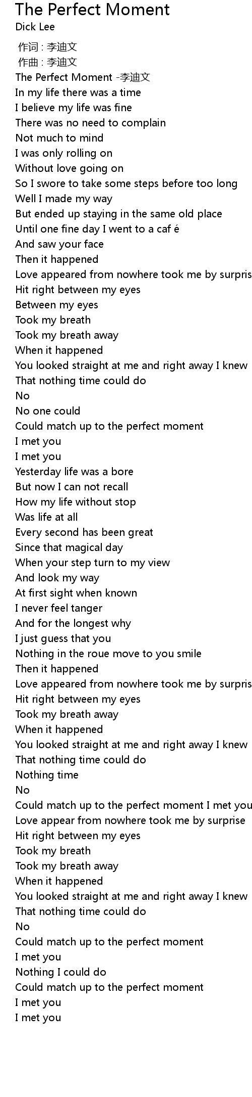 | [00:01.128] | The Perfect Moment lǐ dí wén |
