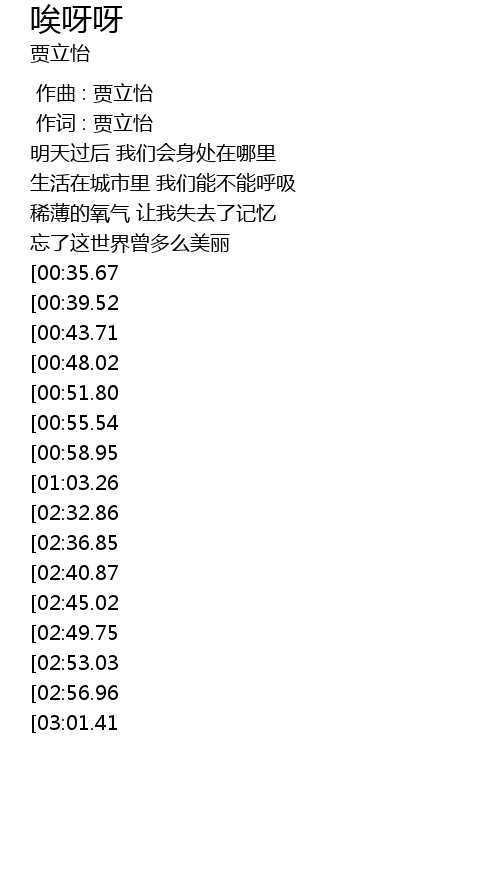 | [03:23.65][02:32.86][01:09.59] | 哎呀呀 不能在一起 |