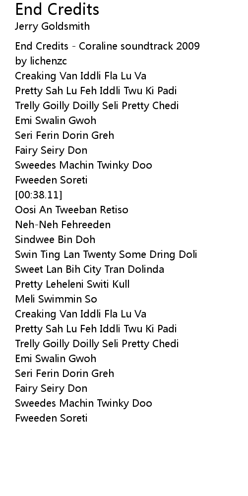 [00:01.67] End Credits - Coraline soundtrack 2009