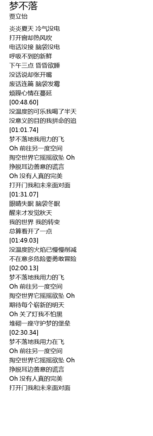 | [02:48.74] | mèng bù là dì wǒ yòng lì zài fēi |