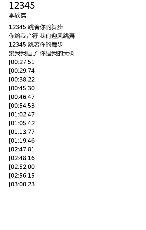 | [00:17.22] | 12345 跳著你的舞步 |