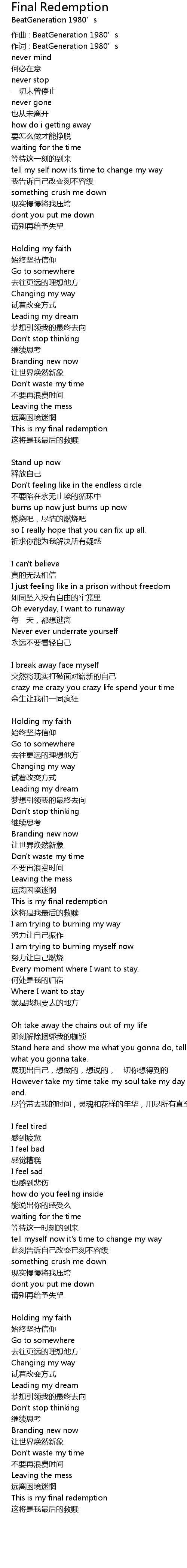 | This is my final redemption | |