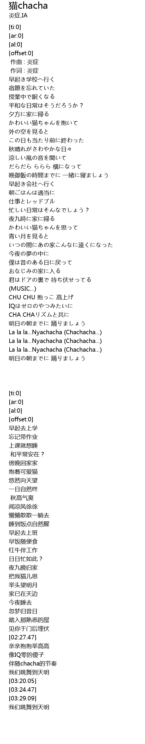 | [03:24.47] | La la la... Nyachacha Chachacha... |