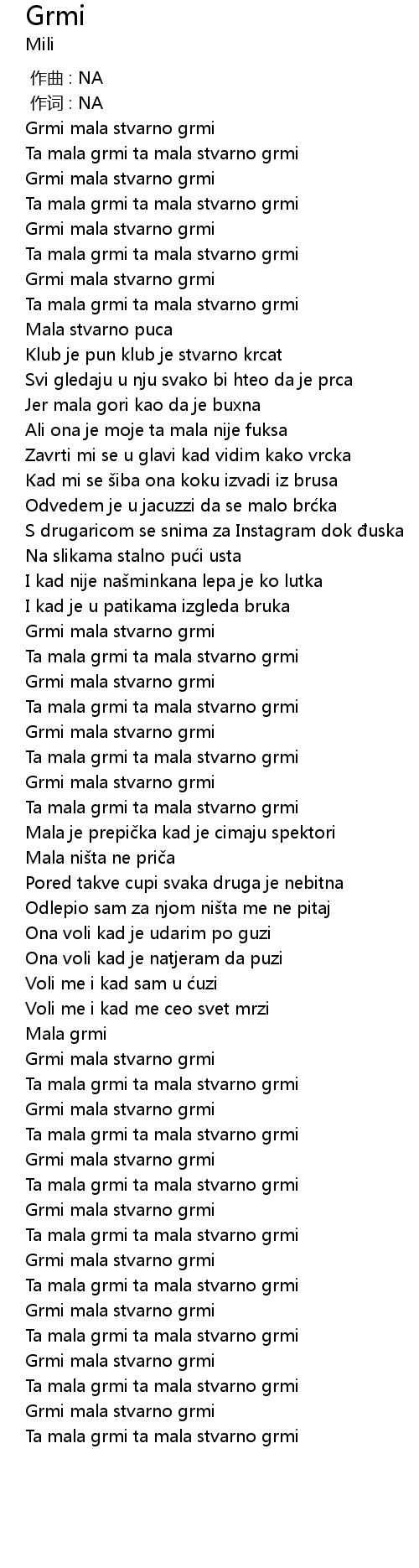 | [02:31.40] | Ta mala grmi ta mala stvarno grmi |