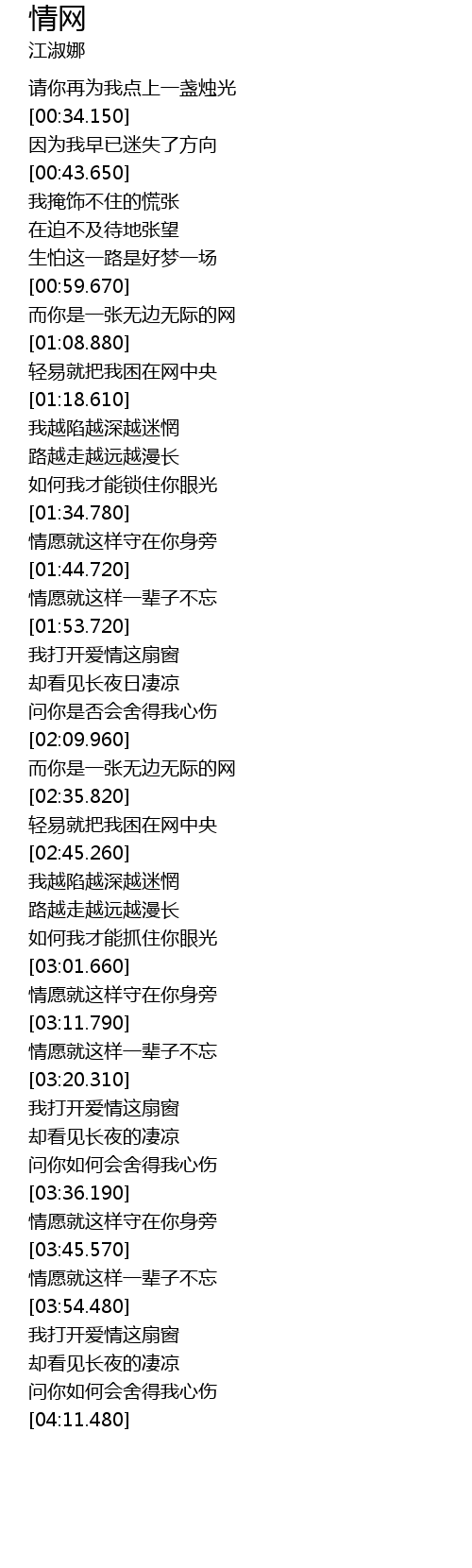 | [02:37.570] | qīng yì jiù bǎ wǒ kùn zài wǎng zhōng yāng |