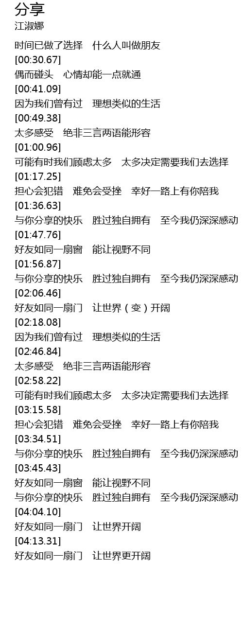 | [04:05.21] | 好友如同一扇门 让世界开阔 |
