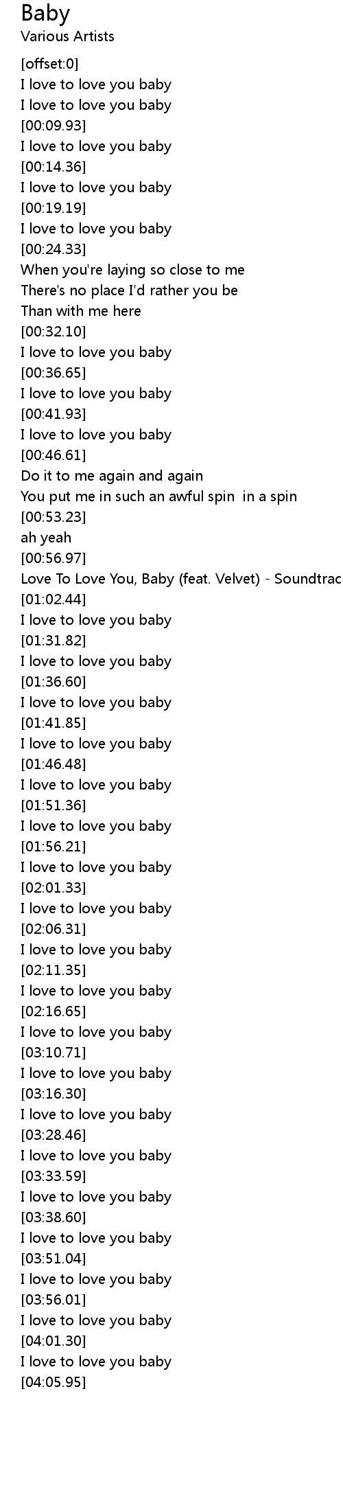 | [00:10.60] | I love to love you baby |