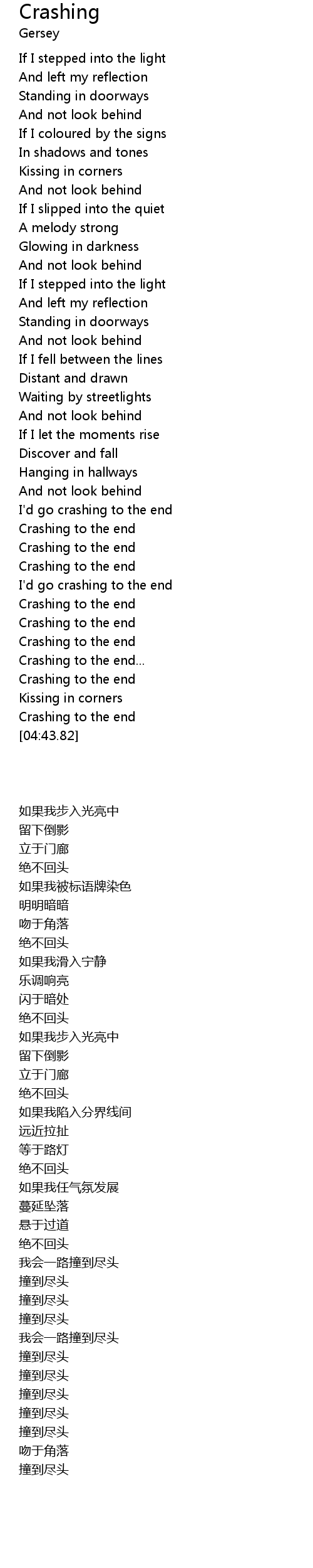 I'd go crashing to the end |