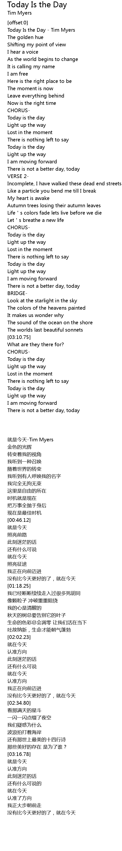 | [00:00.88] | Today Is the Day - Tim Myers |