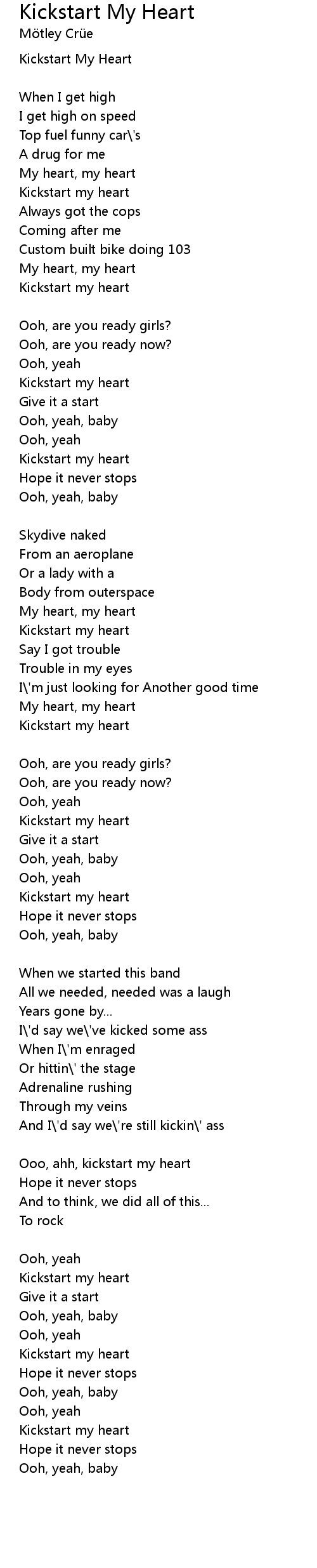 Ooo, ahh, kickstart my heart |