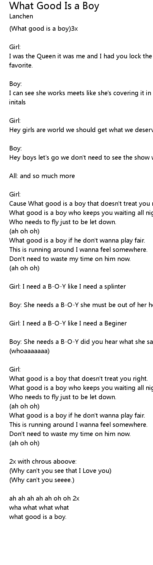 what good is a boy. |