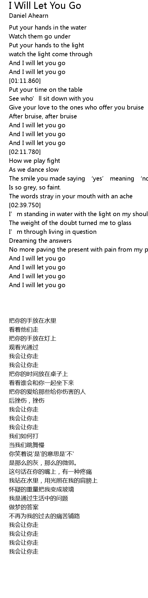 | [02:03.070] | And I will let you go |