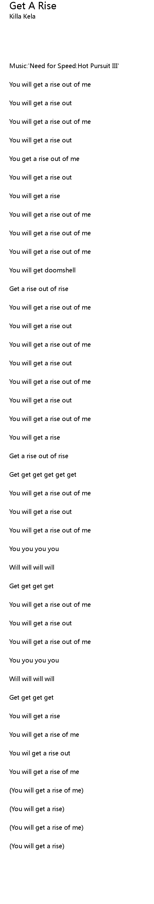 | Song | Get A Rise |