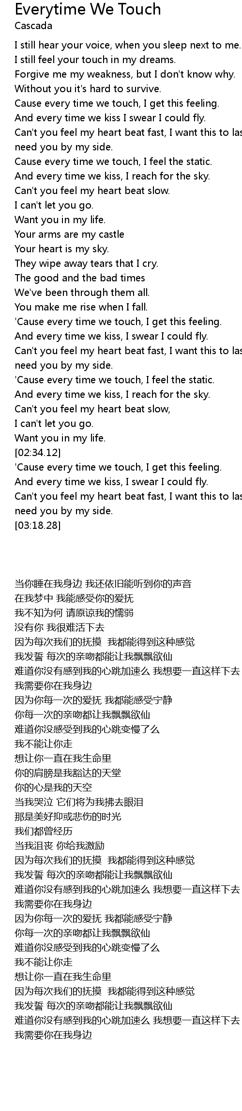 Cause every time we touch, I get this feeling. |