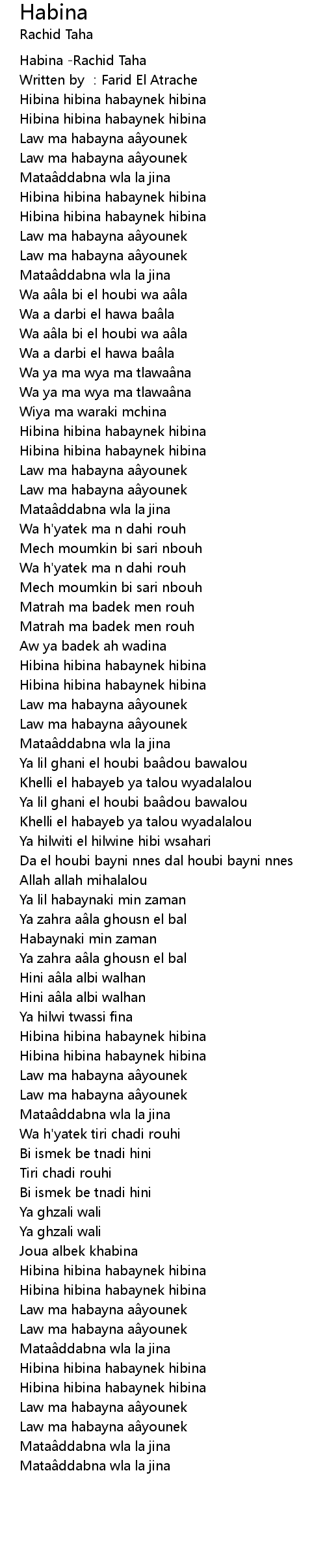 | [00:00.00] | Habina -Rachid Taha |