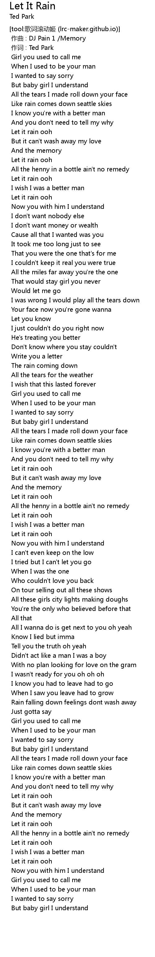 | [00:01.000] | 作词 : Ted Park |