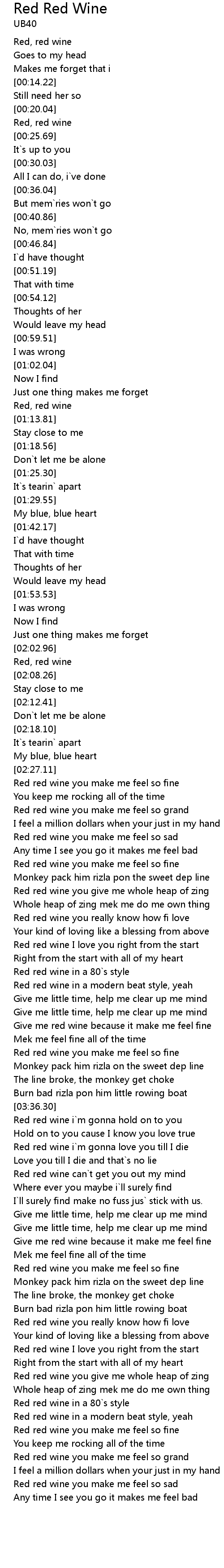 [03:43.30] Red red wine i`m gonna love you till I die