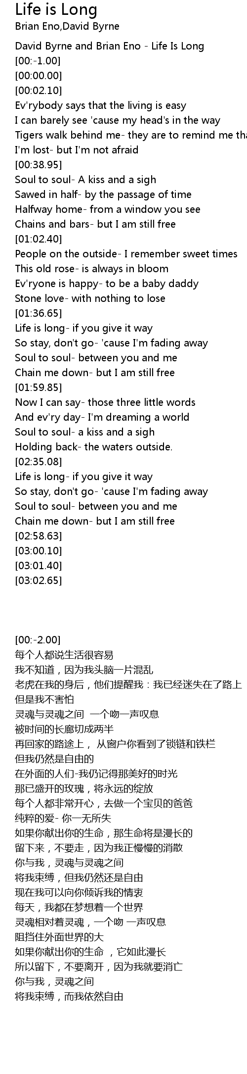 David Byrne and Brian Eno - Life Is Long |