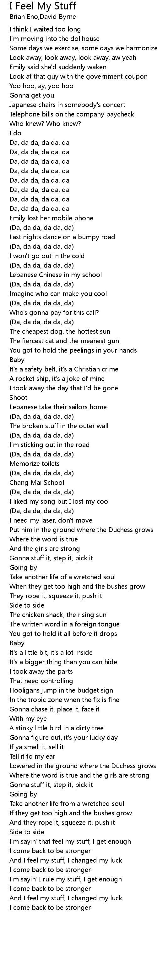 I'm sayin' that feel my stuff, I get enough |