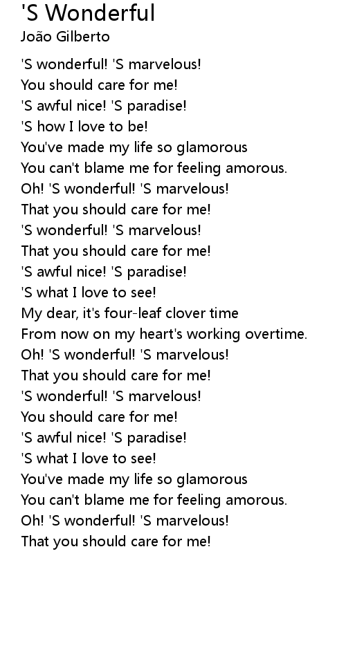 'S wonderful! 'S marvelous! |