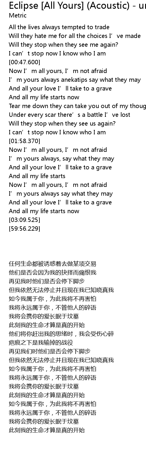 | Song | Eclipse [All Yours] (Acoustic) - unplug |