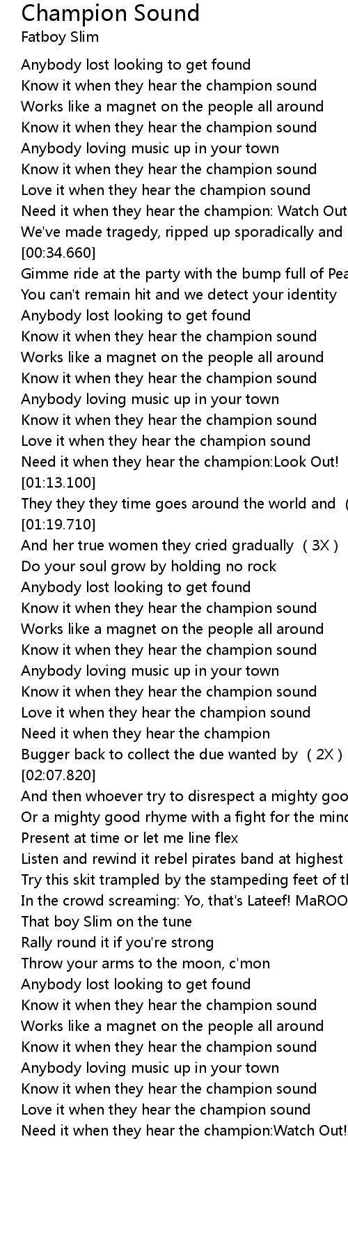 | [01:09.860] | Need it when they hear the champion: Look Out! |