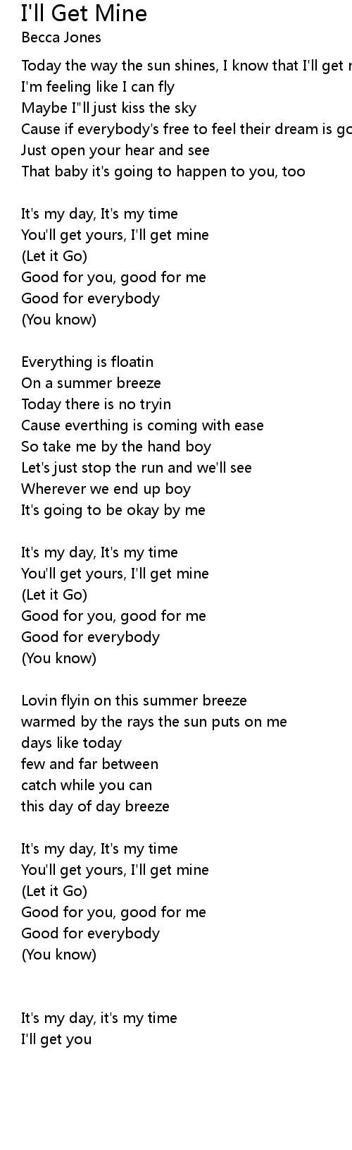 Today the way the sun shines, I know that I'll get mine |
