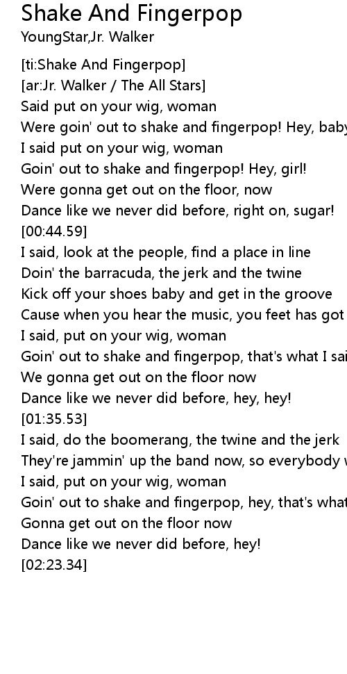 Goin' out to shake and fingerpop, hey, that's what I said! |