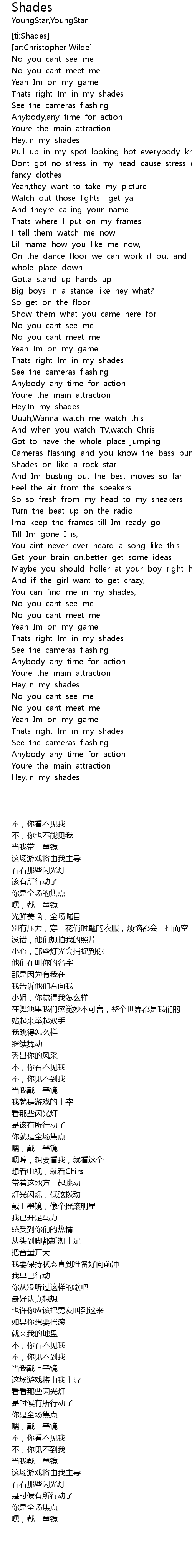 | [00:23.975] | Thats right Im in my shades |