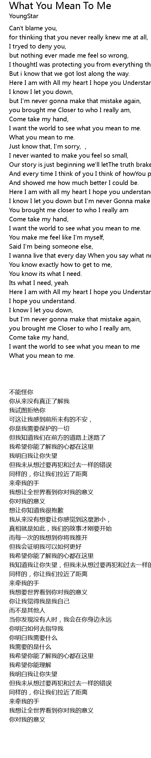 | [03:58.93] | What you mean to me. |
