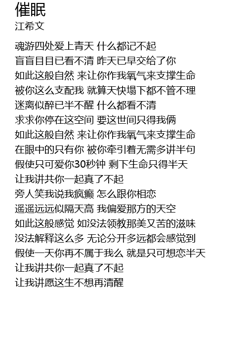 | [00:58.90] | 求求你停在这空间 要这世间只得我俩 |