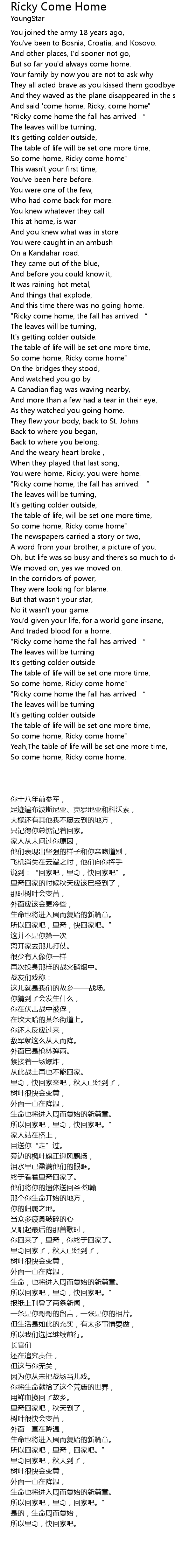 | [00:40.94] | And said ' come home, Ricky, come home" |