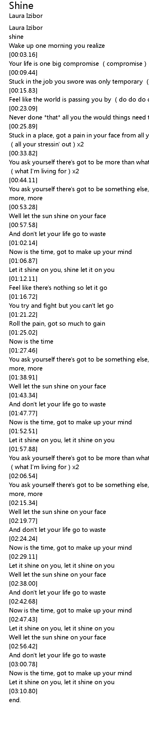 | [03:06.64] | Let it shine on you, let it shine on you |