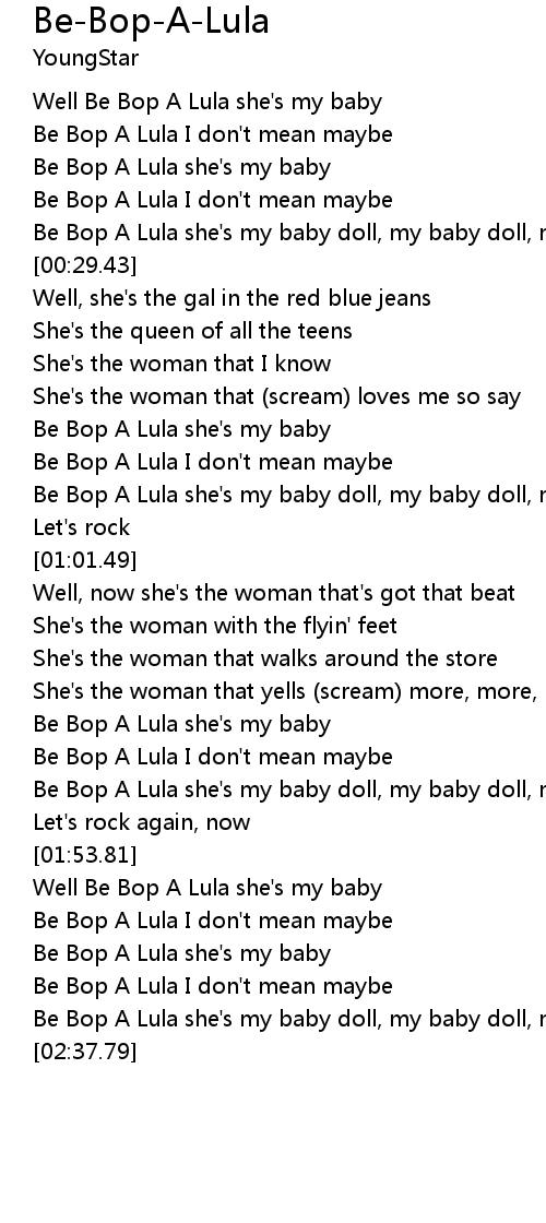 Be Bop A Lula she's my baby doll, my baby doll, my baby doll |