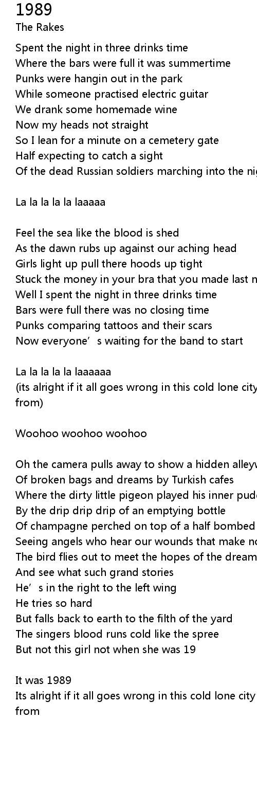 | its alright if it all goes wrong in this cold lone city no one knows where your from | |