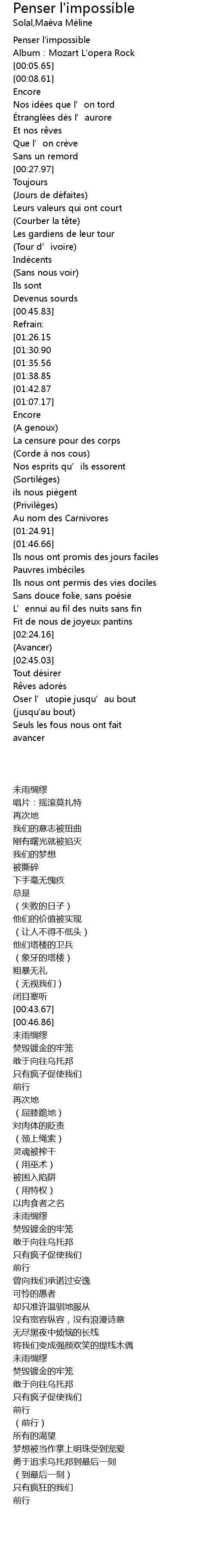 | [00:04.92] | Album: Mozart L' opera Rock |