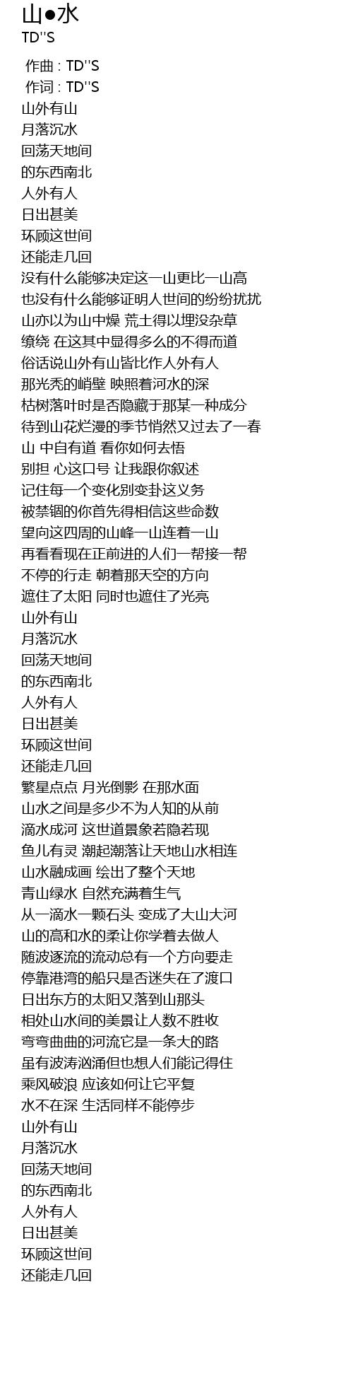 | [00:01.000] | 作词 : TD''S |