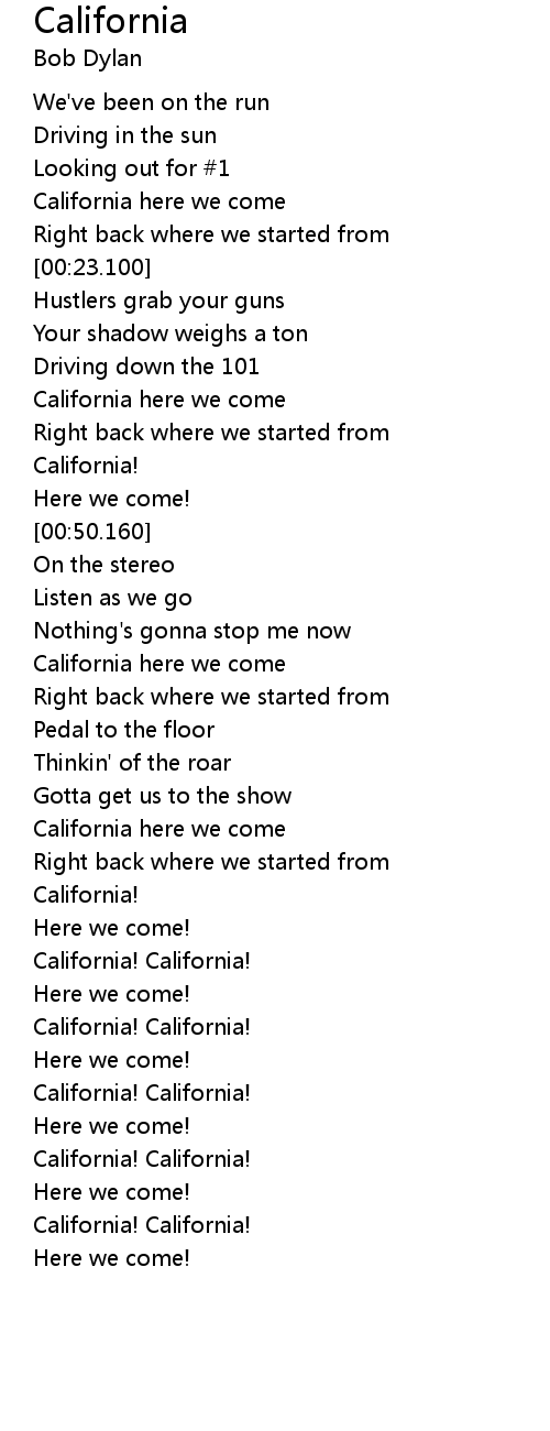 | [00:56.490] | California here we come |